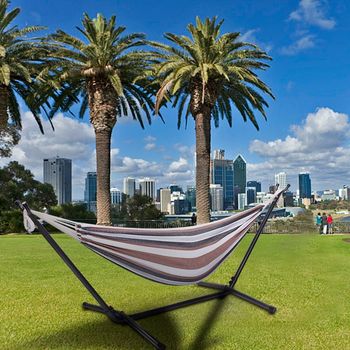 Hamaca doble DB con soporte de acero Capacidad de 450 LB Incluye bolsa de transporte y vigas de equilibrio Material de tela duradera